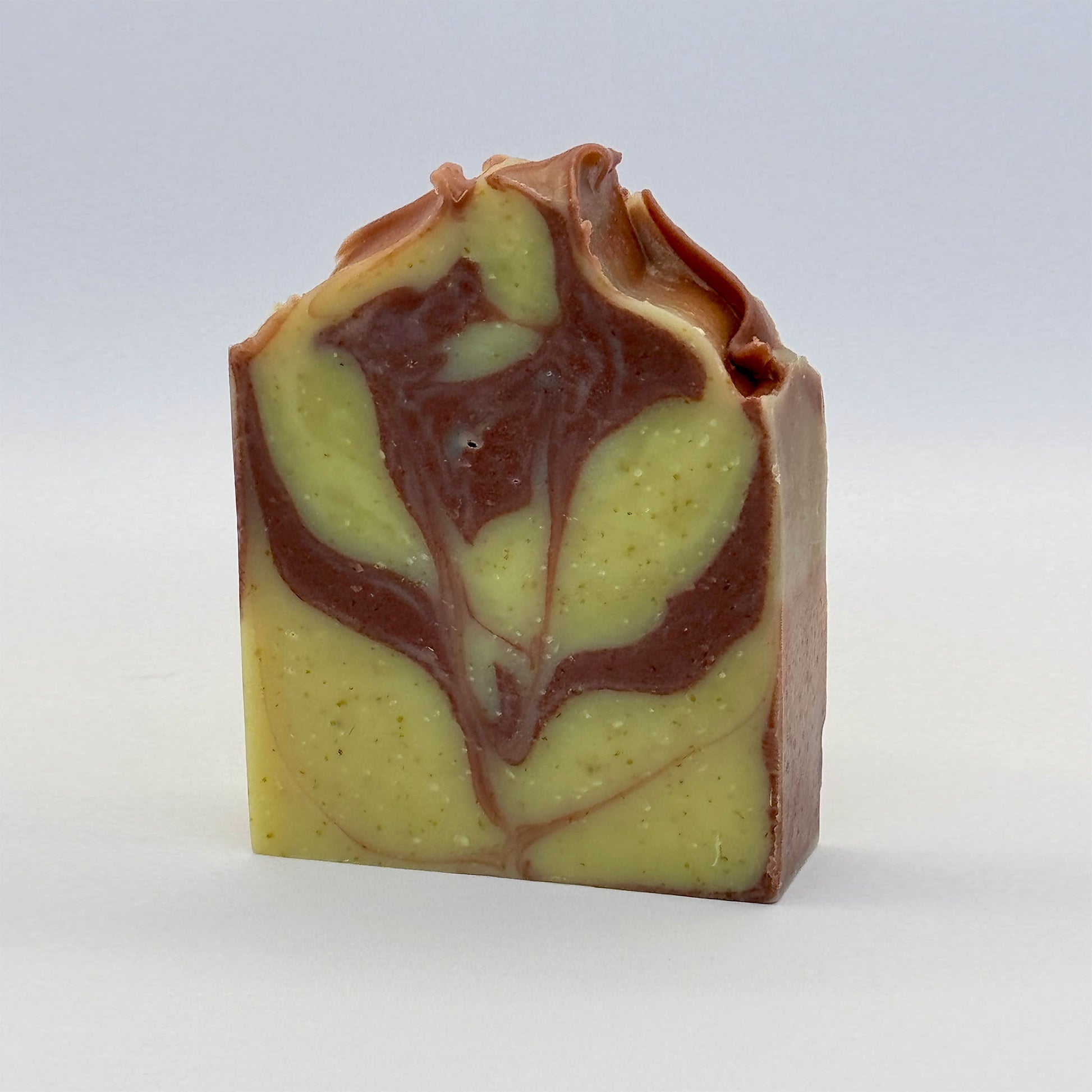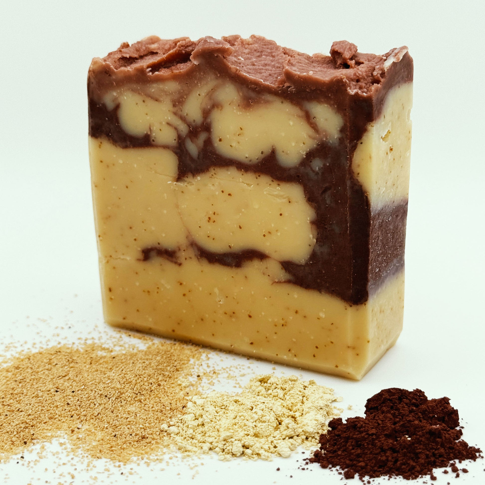 A warm and inviting blend of sweet orange and spicy cinnamon leaf essential oils, brought to life with natural olive stone exfoliation. Coloured with Brazilian yellow and Moroccan red clays, traditionally valued in skincare, this bar carries a rich, earthy hue and artisanal touch. Hand-poured in small batches for a soap that feels both comforting and distinctive.